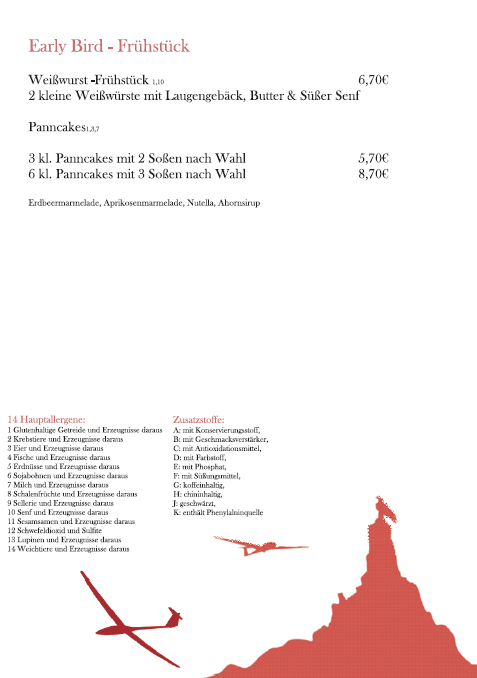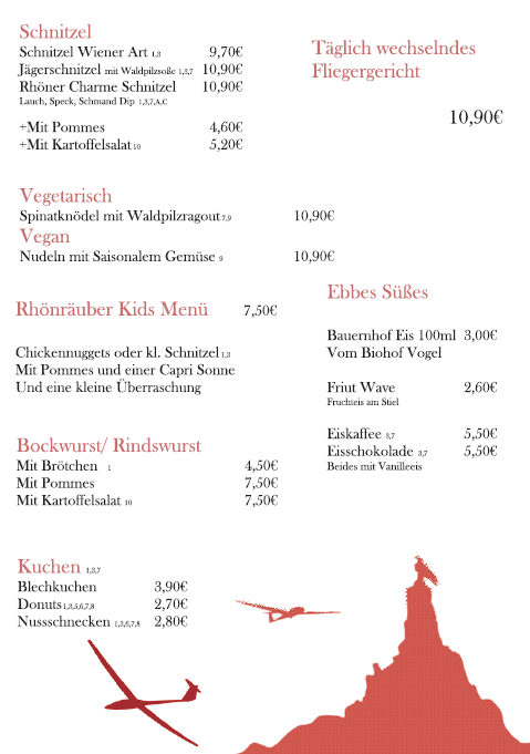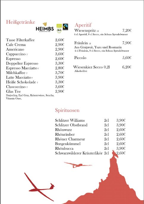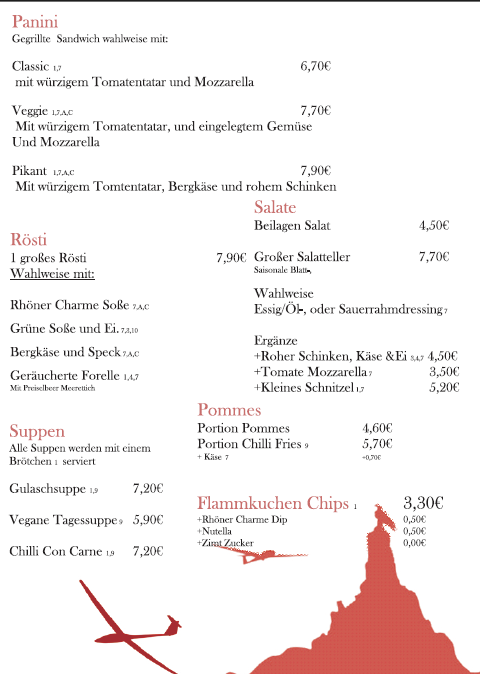The menu at Restaurant Weltensegler Wasserkuppe (Wasserkuppe 1a, 36129 Gersfeld (Rhön), Germany) feels clean and straightforward, yet still has a few standout dishes that leave a strong impression. The focus is on hearty, satisfying meals that are easy to enjoy and broadly appealing.